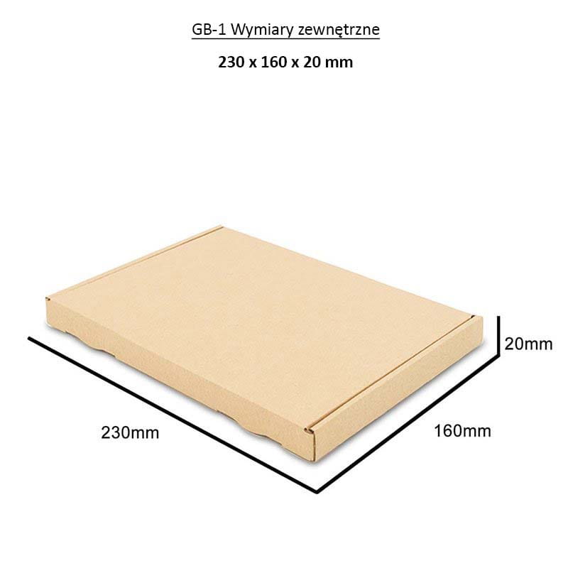 Tässä GB 1 -postilaatikossa voit lähettää helposti A5-kokoisia asiakirjoja ja julkaisuja. Lisäksi pakkaus sopii täydellisesti esimerkiksi CD-levyjen, vakiopakkauksen DVD-levyjen, tietokone-/konsolipelien tai esitteiden lähettämiseen. postitse. . 2 cm:n ulkokorkeuden ansiosta pahvilaatikko voidaan lähettää postitse tavallisen kirjeen tavoin alkaen 3 PLN!