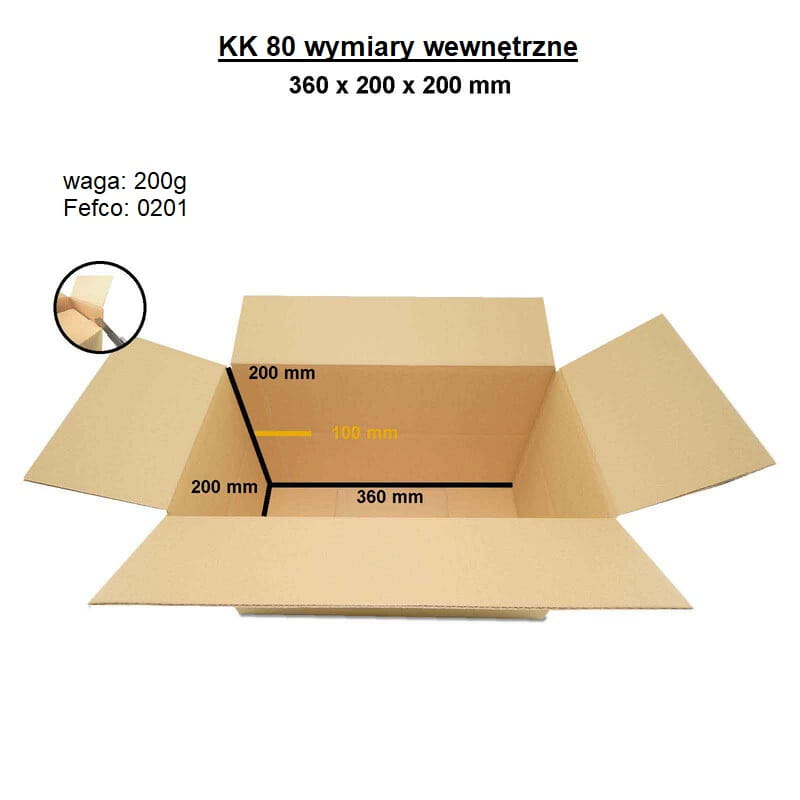 Läppäkoteloa, jonka kapasiteetti on jopa 20 kg ja käytännölliset sisämitat 360 x 200 x 200 mm, voidaan tilata sopiva määrä, heti saatavilla osoitteessa heykapak.pl. KK 80 -pahvi on hyödyllinen moniin tehtäviin varastossa, kotona ja verkkokaupassa – myös siksi, että voit mukauttaa sen tarpeisiisi. Säädettävä korkeus – 200 tai 100 mm, leikkaa vain kulmat! Se vakuuttaa käytetyn B-aallon kestävyydellä ja suunnittelunsa yksinkertaisuudella FEFCO 201 -standardin mukaisesti Sen avulla voit kätevästi ja tehokkaasti varastoida ja lähettää erikokoisia tavaroita, kuten autonosia, toimistotarvikkeita, vaatteita ja sisustuselementtejä. KK 80 -laatikko tarjoaa näille tuotteille asianmukaisen suojan ja vakauden. Sitä voidaan käyttää myös kotona säilytykseen ja uudelleen käytettävään käyttöön laadukkaan työn ansiosta.
